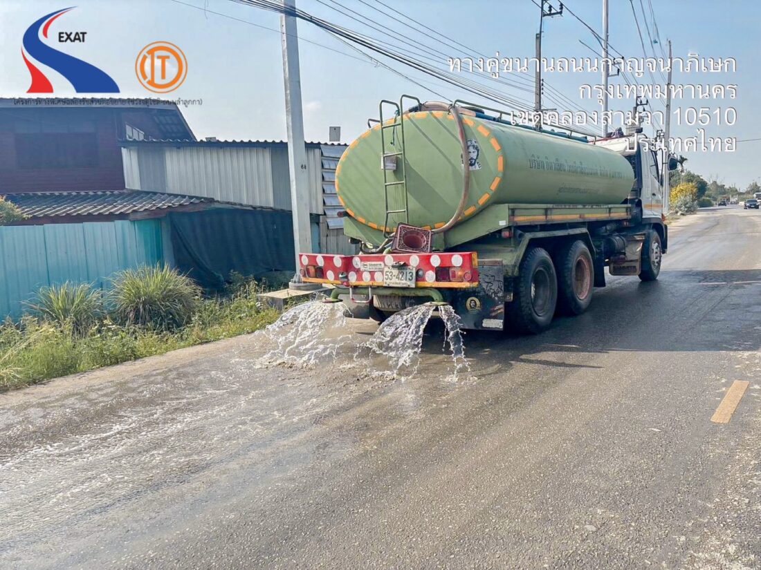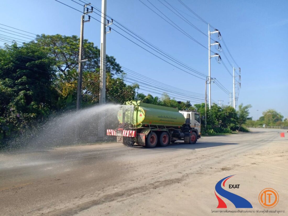 🌍 มีการจัดรถฉีดพรมน้ำ บริเวณรอบพื้นที่ก่อสร้างของโครงการฯ