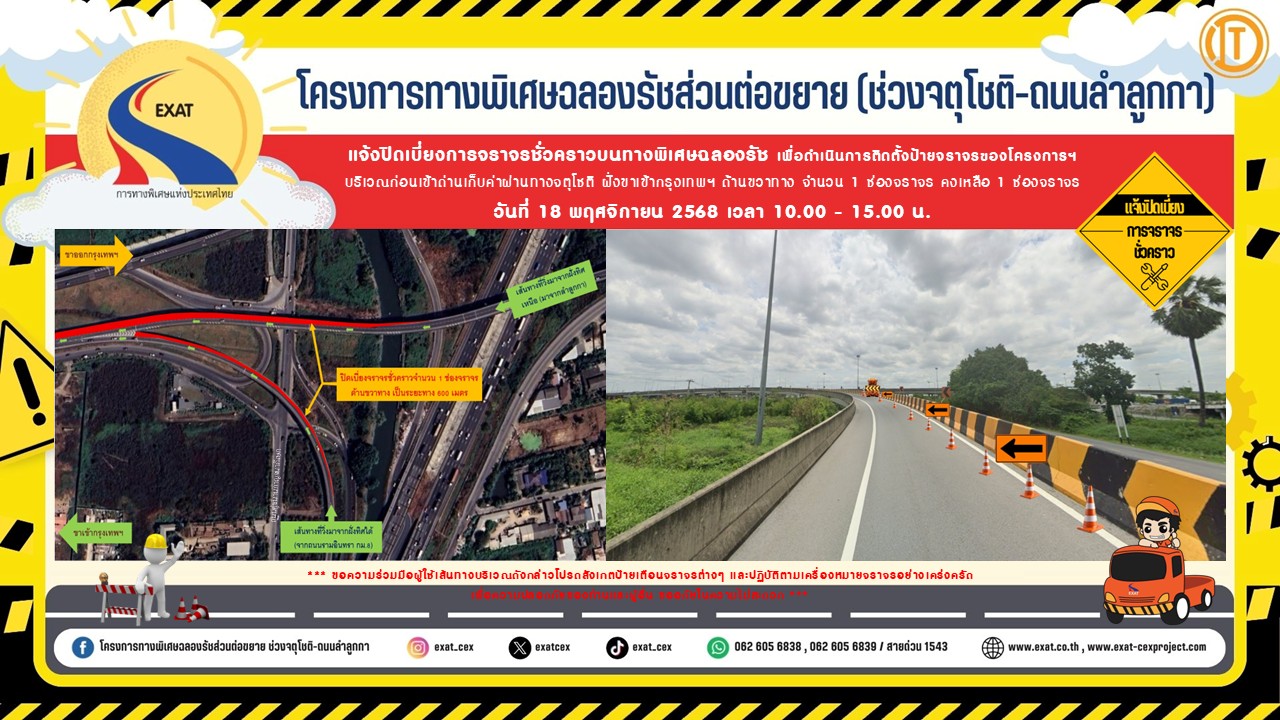 🚧ðŸšĻāđāļˆāđ‰āļ‡āļāļēāļĢāļ›āļīāļ”āđ€āļšāļĩāđˆāļĒāļ‡āļāļēāļĢāļˆāļĢāļēāļˆāļĢāļŠāļąāđˆāļ§āļ„āļĢāļēāļ§āļšāļ™āļ—āļēāļ‡āļžāļīāđ€āļĻāļĐāļ‰āļĨāļ­āļ‡āļĢāļąāļŠ āđ€āļžāļ·āđˆāļ­āļ”āļģāđ€āļ™āļīāļ™āļāļēāļĢāļ•āļīāļ”āļ•āļąāđ‰āļ‡āđāļšāļĢāļīāđ€āļ­āļ­āļĢāđŒāļ„āļ­āļ™āļāļĢāļĩāļ•āļ‚āļ­āļ‡āđ‚āļ„āļĢāļ‡āļāļēāļĢāļŊ