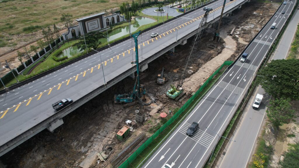 งานก่อสร้างเส้นทางหลัก (Mainline) และทางแยกต่างระดับจตุโชติ (Interchange)