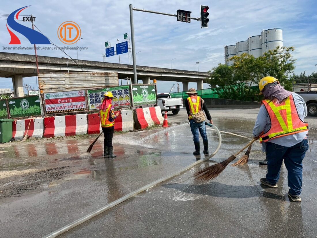 🌍 มีการจัดรถฉีดพรมน้ำ บริเวณรอบพื้นที่ก่อสร้างของโครงการฯ